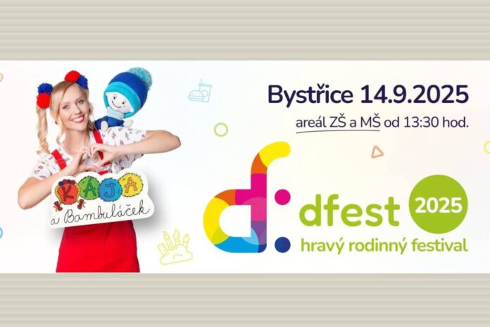 Dfest 2025 v Bystřici startuje už tuto neděli a slibuje odpoledne plné radosti, smíchu a inspirace pro děti i dospělé.