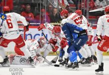 Třinec hrál po většinu zápasu na vlastní polovině, z obranného bloku se snažil přecházet do brejků. Po jednom z nich střelu Janoščína vyrazil na roh brankář Bolek. Jeho spoluhráči kontrolovali míč častěji, ale k zakončení se nedostali. První pořádnou střelu mezi tyče vyslal až Glaser a hned byla gólová.