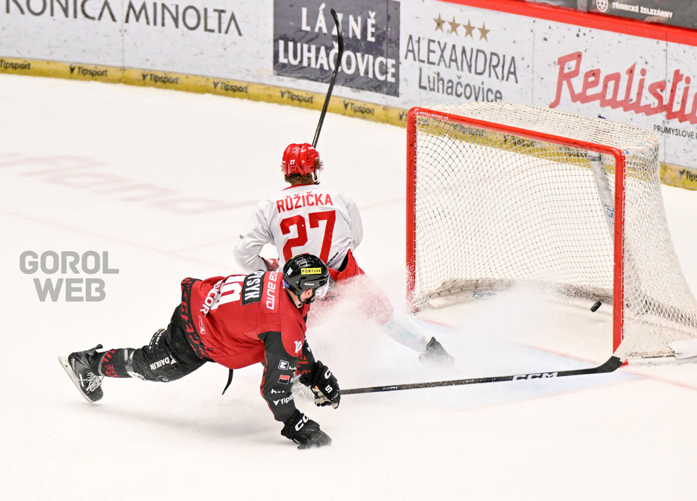 V 57. minutě se trenéři Sparty rozhodli odvolat Kováře, během závěrečného power play ale rychle inkasovali. Oceláři hned po vhazování odpálili kotouč směrem do útočného pásma, puk dojel Martin Růžička, ač byl tísněn sparťanským Kanaďanem Pysykem, svým druhým gólem komfortně upravil na konečných 5:3.